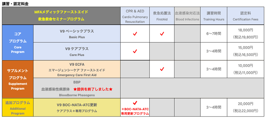 基本プログラムは、AHA(アメリカ心臓協会)の国際ガイドライン(Guideline2020)に沿ったMFA(MEDIC First Aid)のプログラムを採用しています。